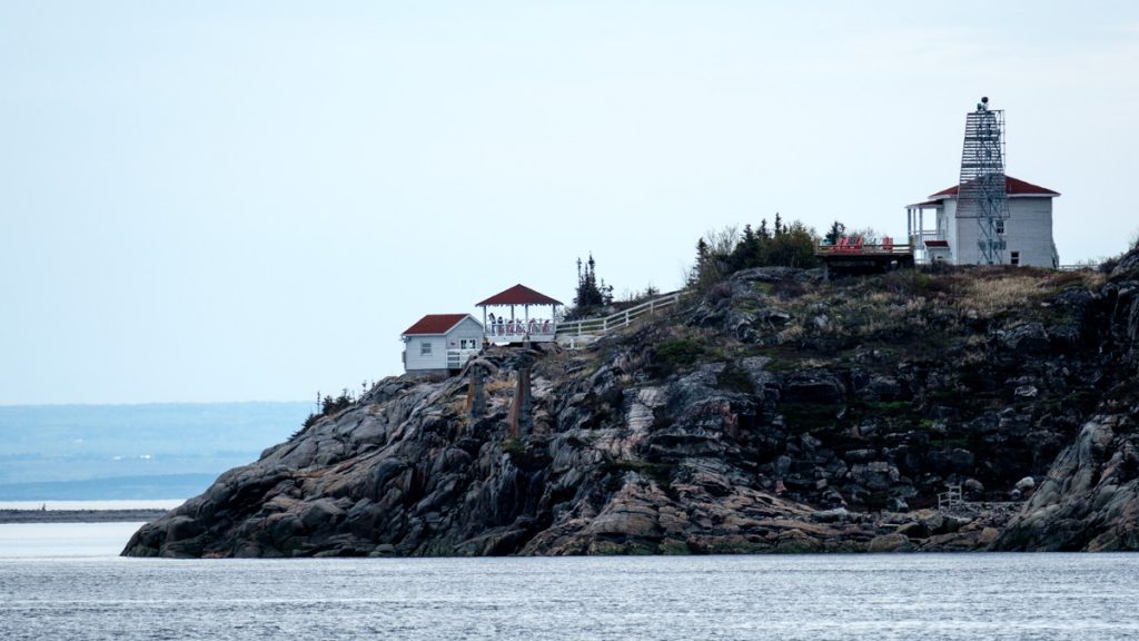 Gleich am nächsten Morgen sind wir mit der ersten Fähre übergesetzt. Dann Richtung Tadoussac, dem Zentrum für Walbeobachtungen. Zwischendurch haben wir schon an einem Aussichtspunkt angehalten. Tatsächlich haben wir schon die ersten Belugawale gesehen. Bis zum Cap de Bon-Desir ist es nicht mehr weit. Hier ist auch ein beliebter Beobachtungspunkt für Wale. Dieses Naturzentrum hat….. natürlich noch nicht offen. Das Wohnmobil wird wieder neben dem Eingang geparkt und man geht zu Fuß bis zur Küste. Mit dem Fernglas kann man Minkwale beobachten.