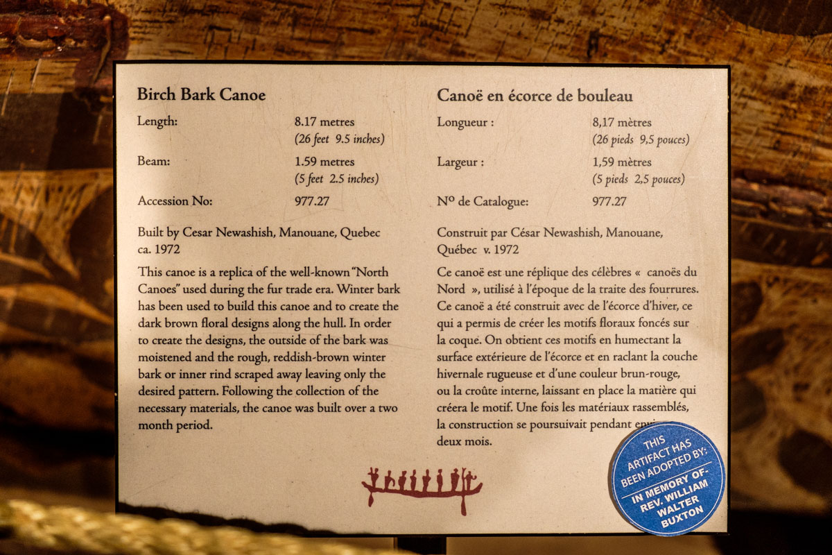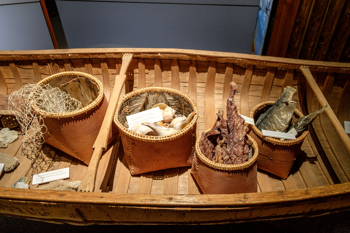 Am nächsten Morgen besuchen wir dann das Kanumuseum, es zeigt die Entwicklung dieser schlanken Boote von den Anfängen, über die Ära des Pelzhandels bis zum heutigen Tag. Ohne diese Kanus wäre die Erforschung Canadas nicht möglich gewesen.