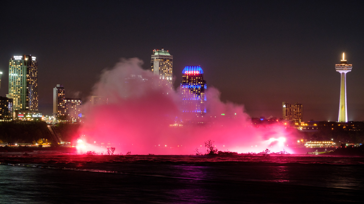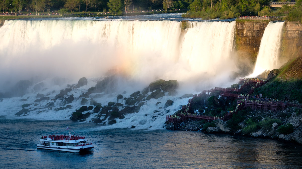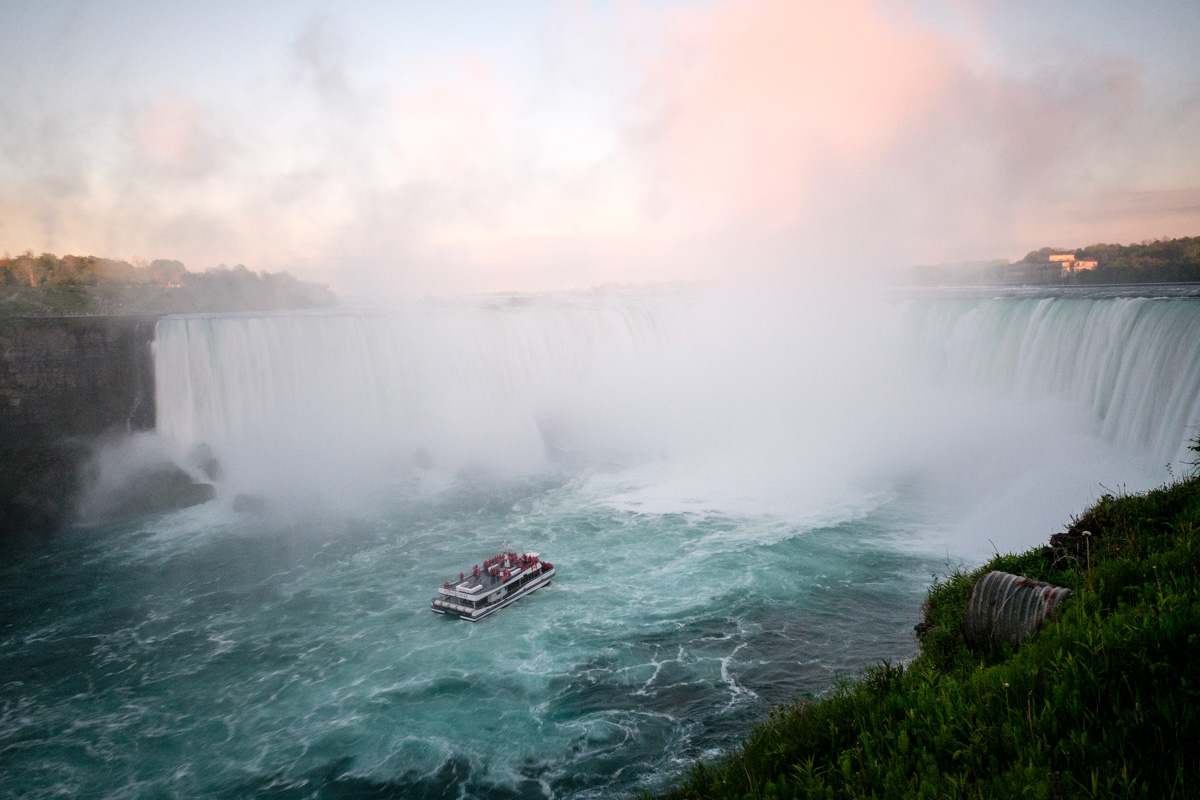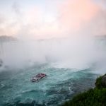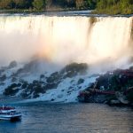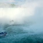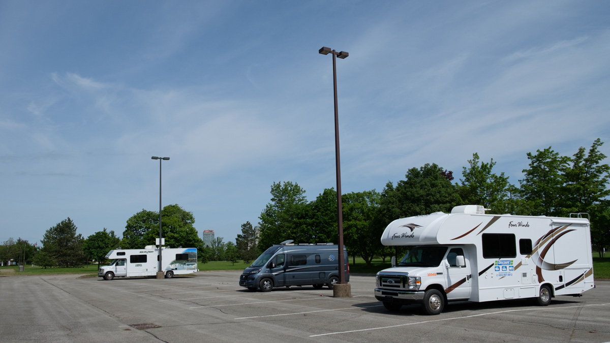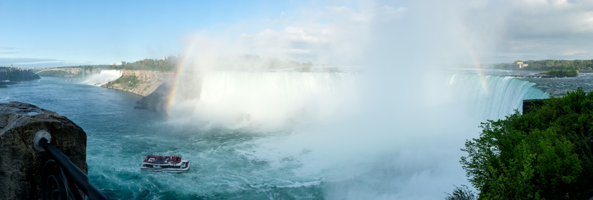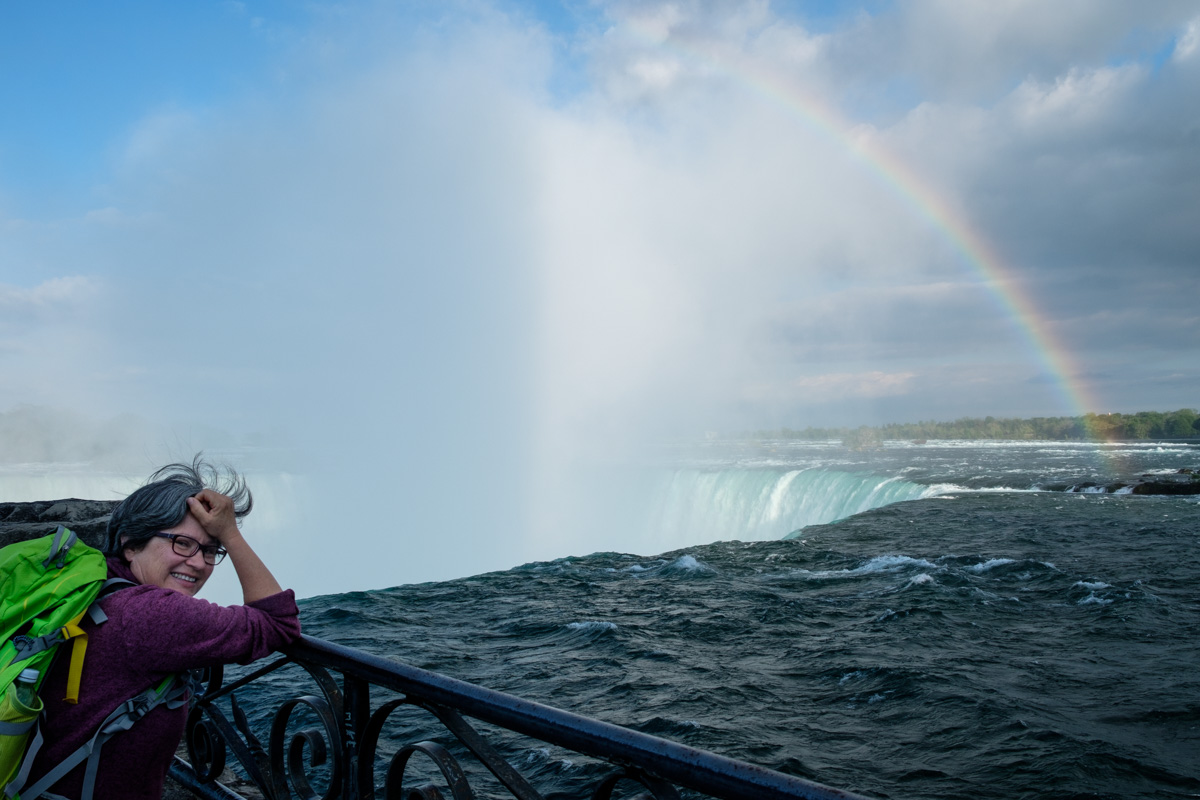 Kurz nach 2 Uhr Nachmittags gibt’s noch einen Kaffee und dann starten wir zur Fahrt nach Niagara Falls durch. Am späten Nachmittag kommen wir an und finden doch tatsächlich einen Parkplatz in der Nähe der Fälle und die Sonne scheint jetzt auch noch! So viel Glück muss man haben. Mit vielen anderen Touristen bewundern wir die Niagarafalls. Sie sind wirklich beeindruckend! Ludwig fotografiert immer noch, deshalb habe ich mich umgezogen (kein Problem wenn man mit dem Wohnmobil unterwegs ist) und bin mit unserer Ida zum Laufen. Wer kann schon von sich behaupten entlang der Niagarafälle gejoggt zu sein. Mit einer Abfrischung durch die Gischt. Es hat Spaß gemacht, aber zur Hauptreisezeit wäre es nicht möglich gewesen. Auf dem Parkplatz fragen wir die Kontrolle ob es einen Parkplatz gibt auf dem man übernachten kann. Tatsächlich gibt es in zwei km Entfernung einen RV Parkplatz auf dem wir für eine Nacht bleiben können. Ein riesiger Platz und da stehen nur ein paar einsame Wohnmobile!