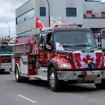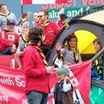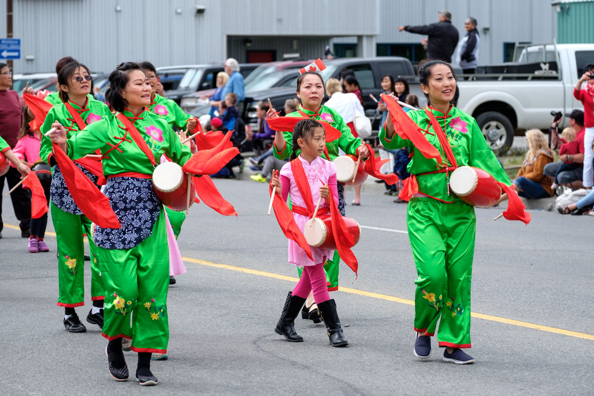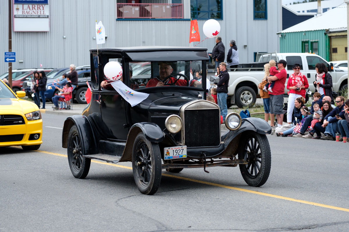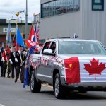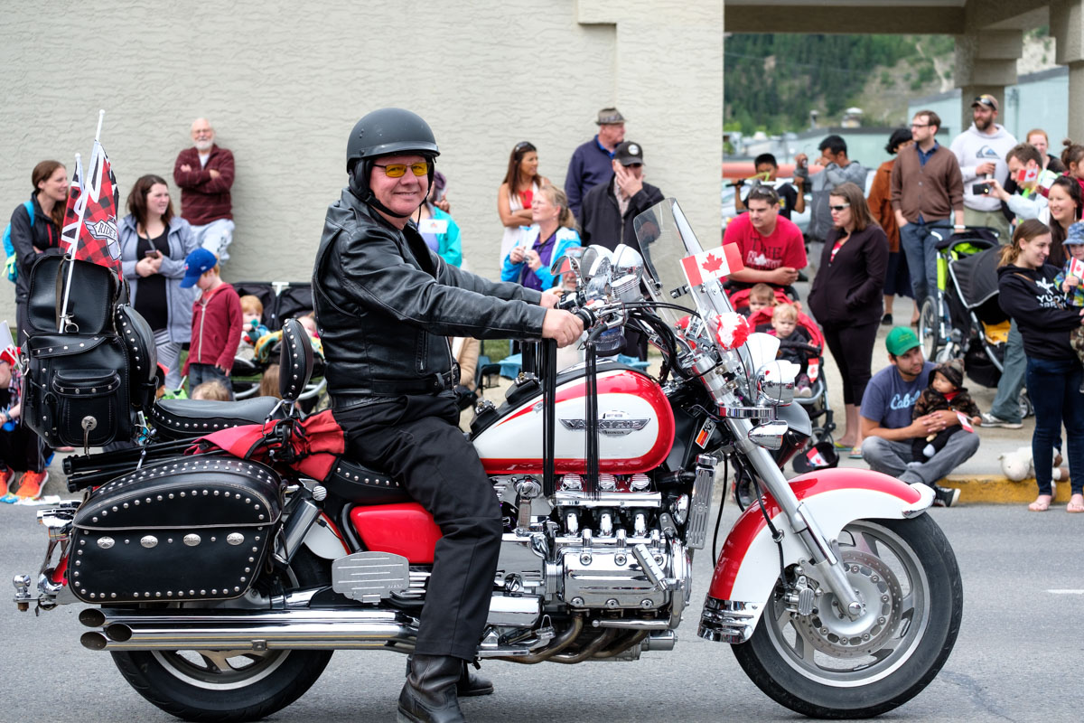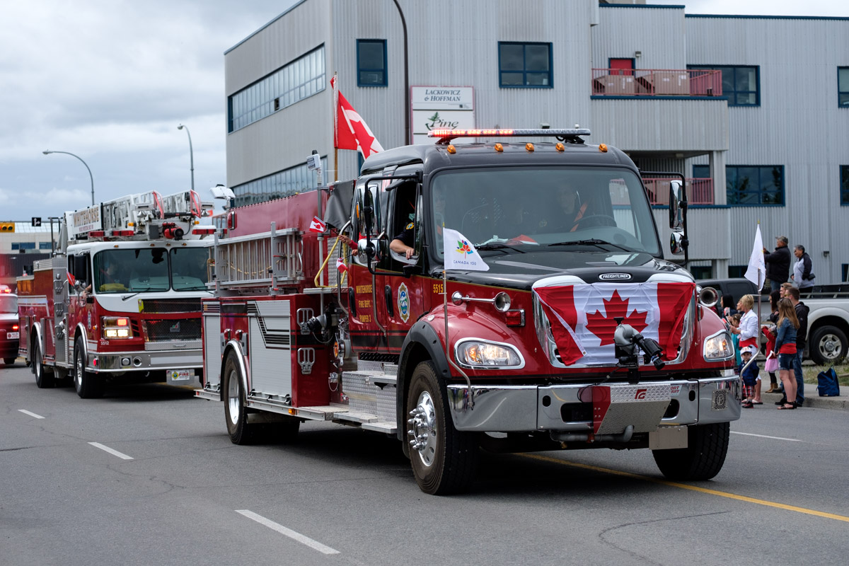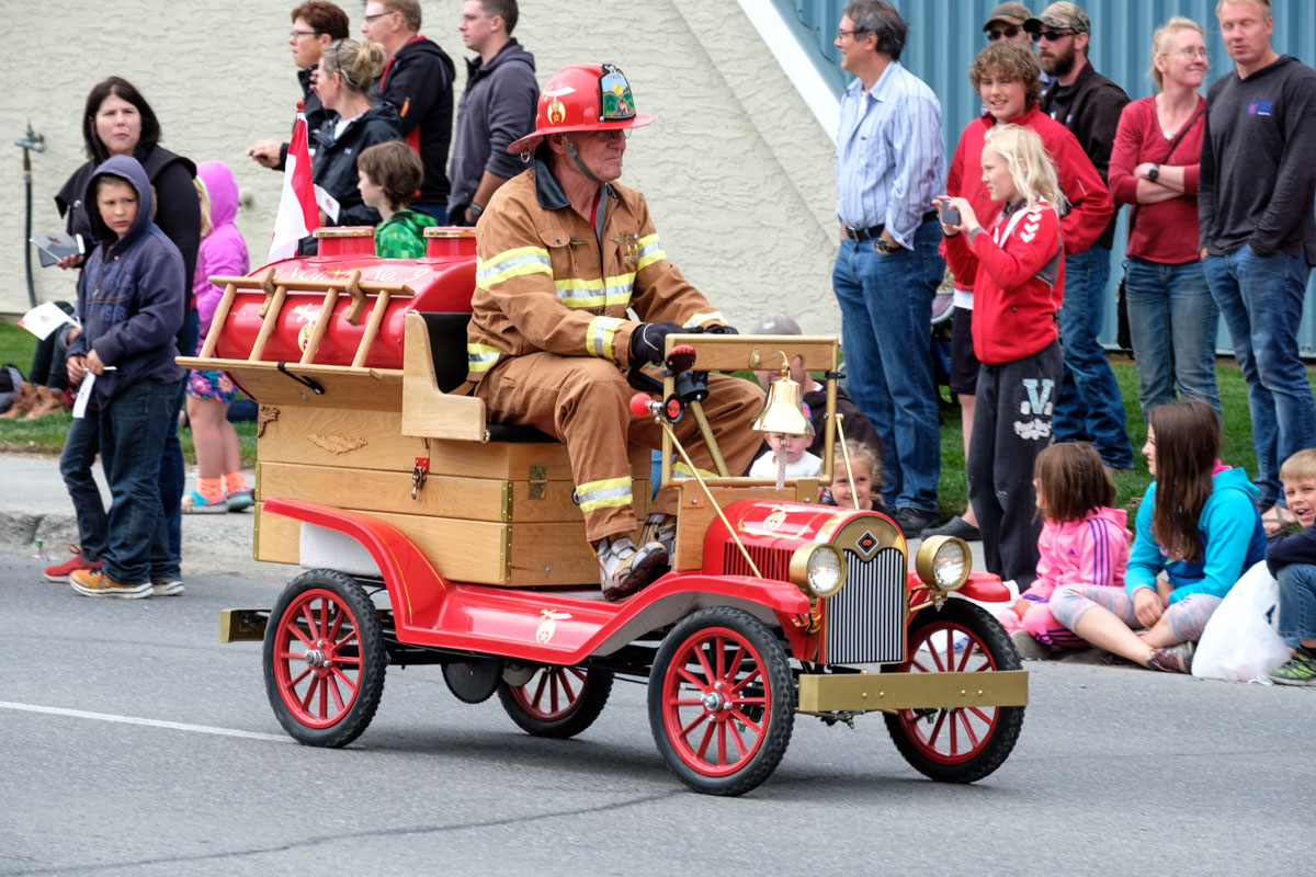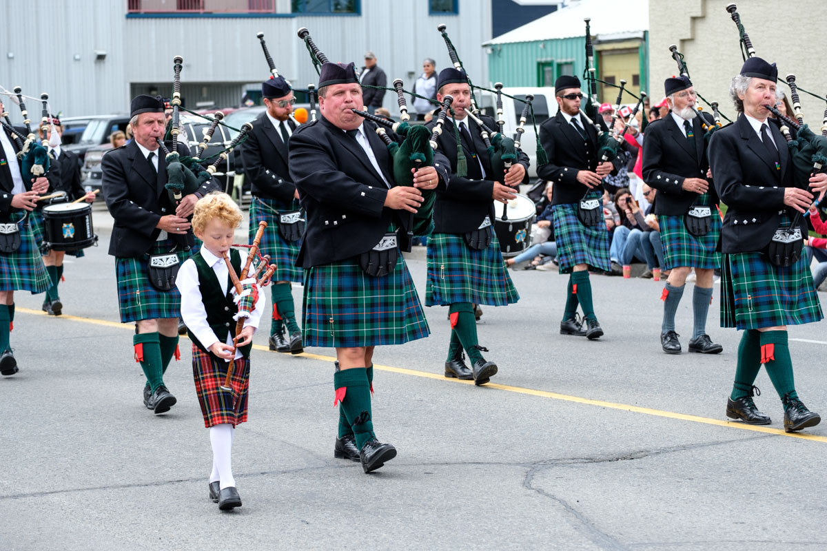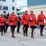 Der Canada Day beginnt mit Pancake Frühstück, dann die Parade. Bei uns hab das noch nicht erlebt, ich glaube die ganze Stadt ist beteiligt. Vorne erstmal ein Polizeiauto, dann winkt der Bürgermeister mit Familie vom Auto, dann eine Musikkapelle, die Mounted Police (diesmal in schicker roter Uniform), die Feuerwehr, eine Dudelsackkapelle, die Canada Rangers, Vereine… (natürlich auch Pfadfinder) der Zug dauert mindestens eine halbe Stunde. Es ist eine tolle Stimmung, Fähnchen werden geschwenkt, alle wünschen sich „Happy Canada Day“! Anschließend wird im Shipyards Park weitergefeiert. Macht gar nichts dass es ein bißchen regnet.