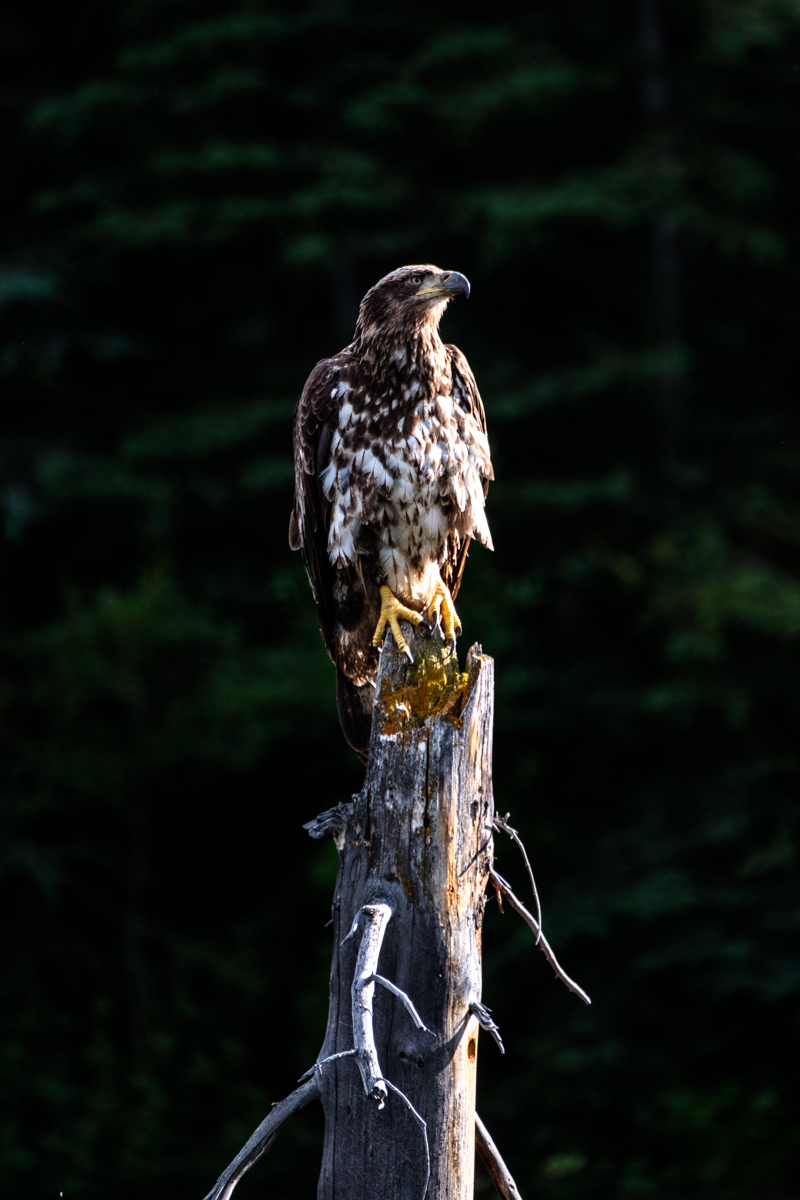 Mir gefällt es hier, wir bleiben noch länger. Man kann auch ganz in der Nähe schöne Wanderungen machen, beim Miles Canyon oder bei den Hidden Lakes. Dass wir dabei auch noch Biber, Loons und Adler sehen, haben wir nicht erwartet.