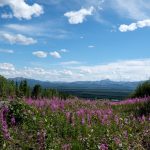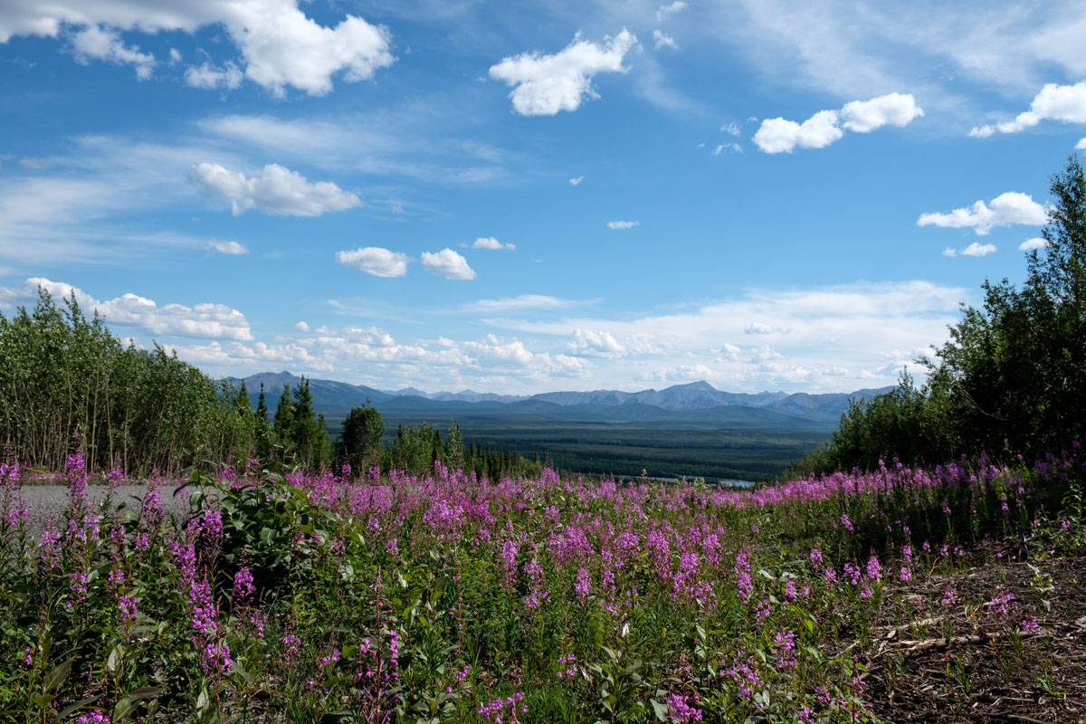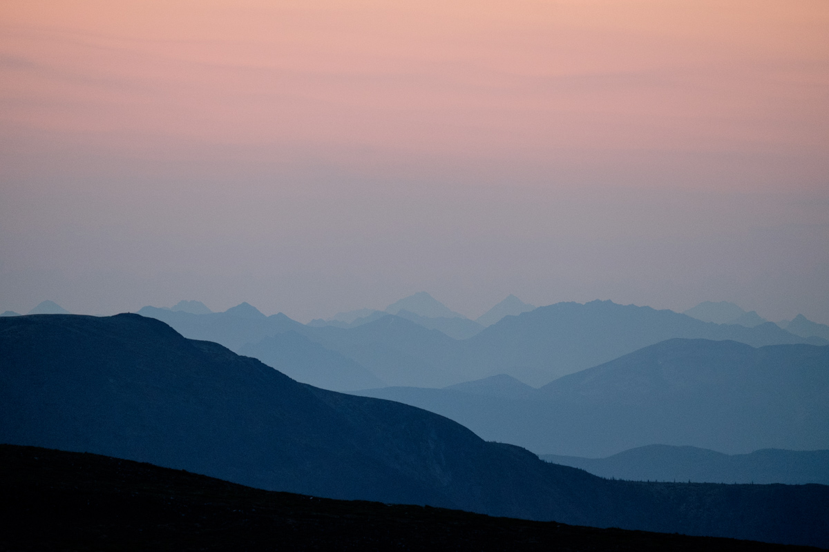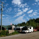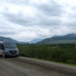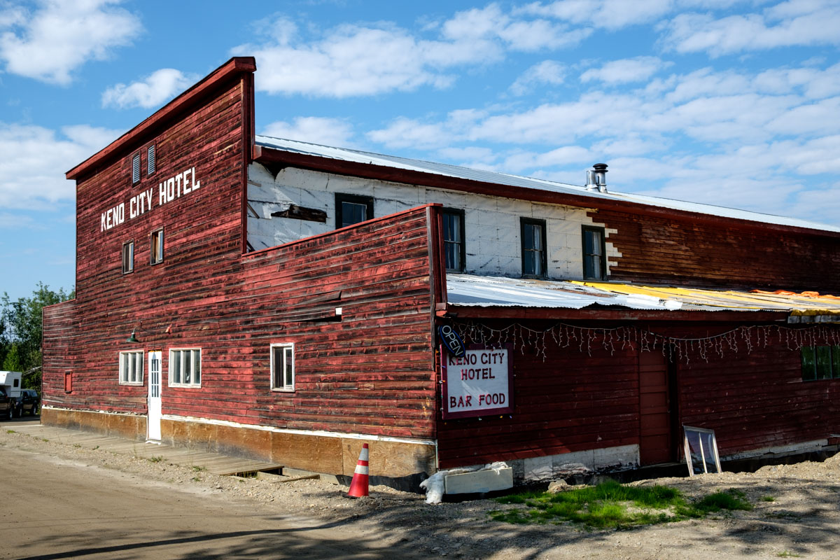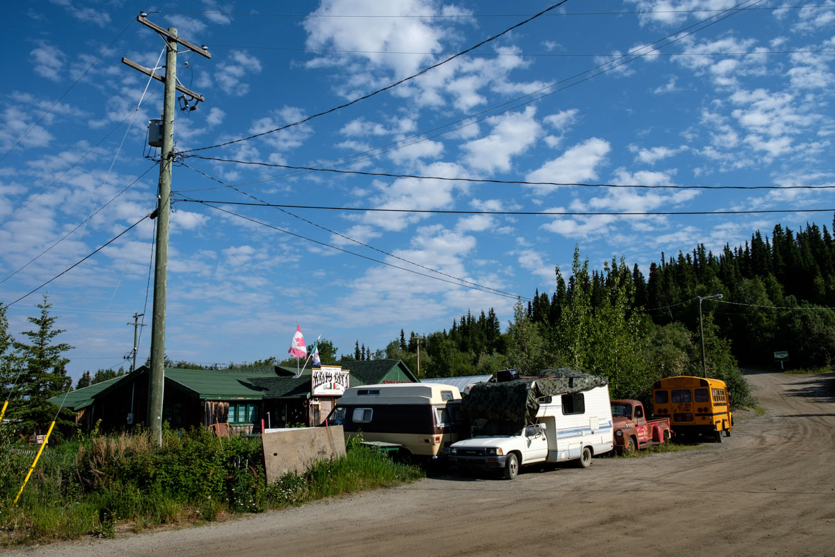 Als Test für den Dempster Hwy beschließen wir spontan vorher noch den Silver Trail bis nach Keno zu fahren. Bis Mayo ist die Straße geteert, danach nur noch Schotterpiste, aber auch gut zu fahren. Bei dem Keno Signpost hat man eine gigantische Aussicht, wir bleiben über Nacht stehen, weil ich endlich sehen möchte wann es denn dunkel wird. Gegen ein Uhr bin ich ins Bett, es ist immer noch hell.