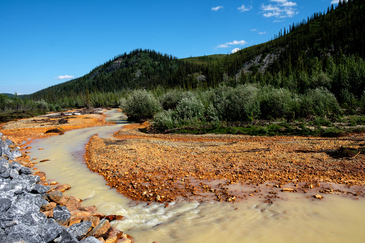 Wir übernachten noch mal in Eagle Plains, die Straße runter ist wieder gesperrt. Am nächsten Morgen ist die Strasse offen der Wind hat gedreht, der Smog begleitet uns bis zum Tombstone Park. Mit einem total verdreckten Auto erreichen wir Dawson City, setzen nur noch mit der Fähre zum Campground über, dann ist gut.