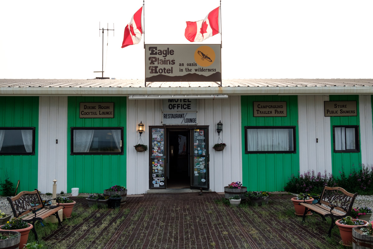 Gerne fahren wir noch die 100 km bis Eagle Plains, möglichst weit vom Feuer weg.