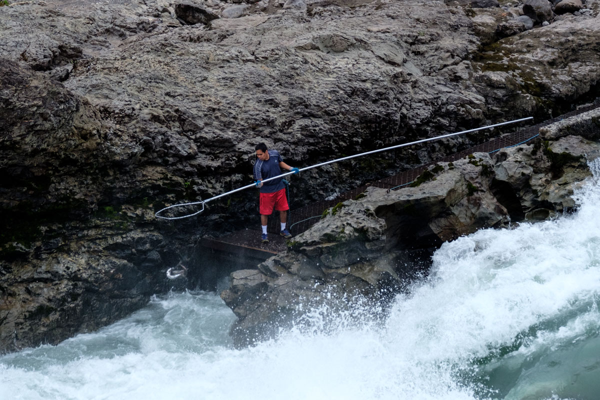 Am Skeena River kann man Lachsfischer beobachten die noch wie früher Lachse fangen.