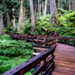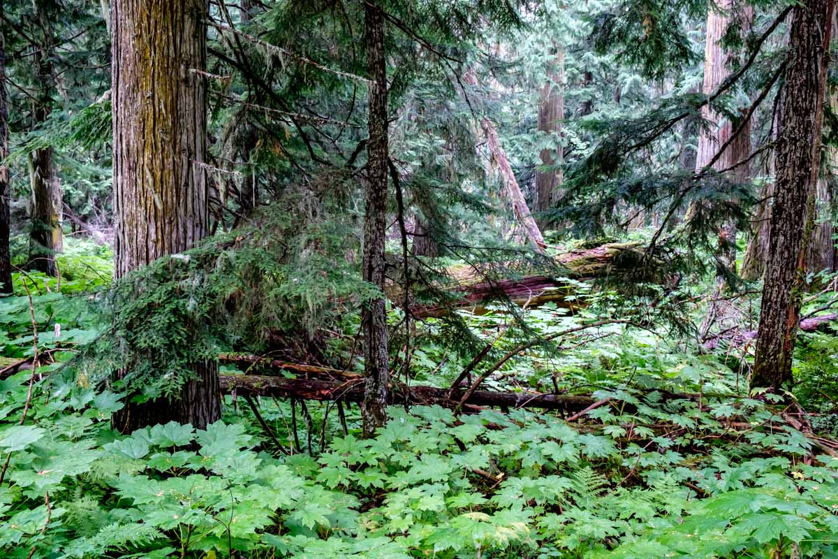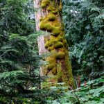 Wir halten, wissen mal wieder nicht was uns erwartet. Es ist ein Regenwald, der am weitesten von der Küste entfernt ist. Riesige uralte Rotzedern, am Boden Farne, Moos, dazwischen ein Bach. Man läuft auf einem Bohlenweg durch den Wald, man könnte meinen es ist die Kulisse für den Herrn der Ringe. Sogar einen Baumbart gibt es, es ist eine riesige Red Cedar deren Seitenäste wie Arme aussehen. Ich bin total begeistert.
