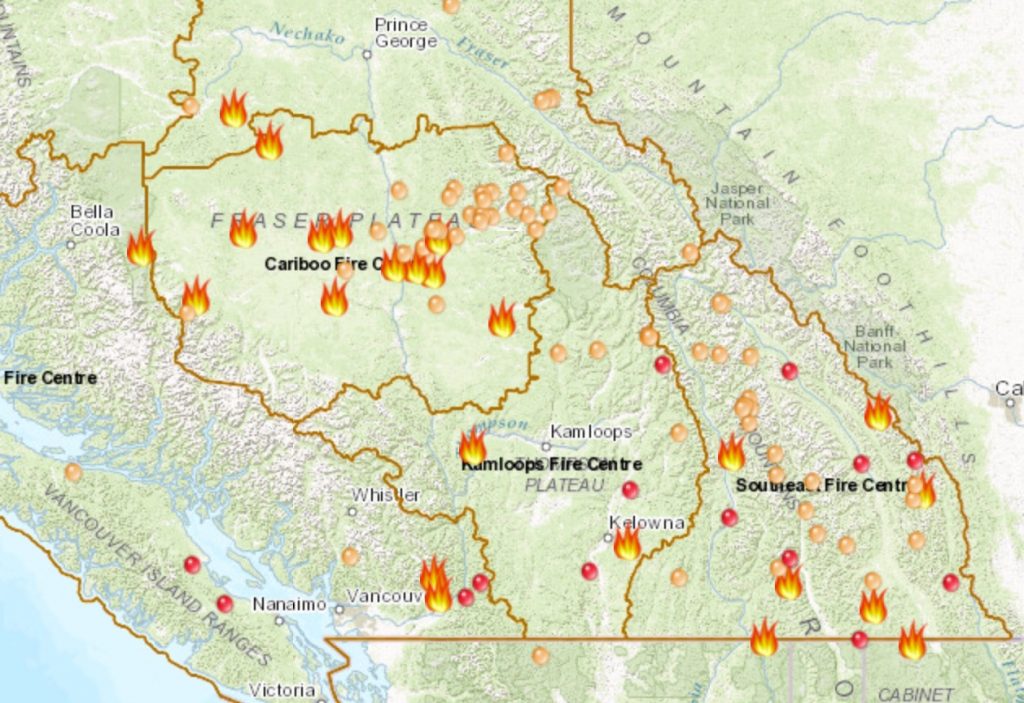 Wir biegen auf den Hwy 5 ab, Richtung Kamloops, fahren immer weiter weil es einfach zu diesig ist. (Unsere Feinstaubdosis haben wir für die nächsten paar Jahre) Im Wells Grey PP wollten wir ein paar Tage ausruhen, wandern, aber die Trails waren bis auf ein paar Aussichtspunkte gesperrt, eine Dunstglocke hängt über uns. Wir fahren weiter. Jetzt hab ich meinen absoluten Tiefpunkt! Das ganze südliche BC ist verraucht, es ist schrecklich. Wir halten kurz in Kamloops die Sonne sieht man als roten Ball im Dunst. Auch die Vegetation hat sich völlig verändert. Statt grüner Wälder sieht man vertrocknete Wiesen, dazwischen Bäume. Es sieht wie in Südeuropa aus.