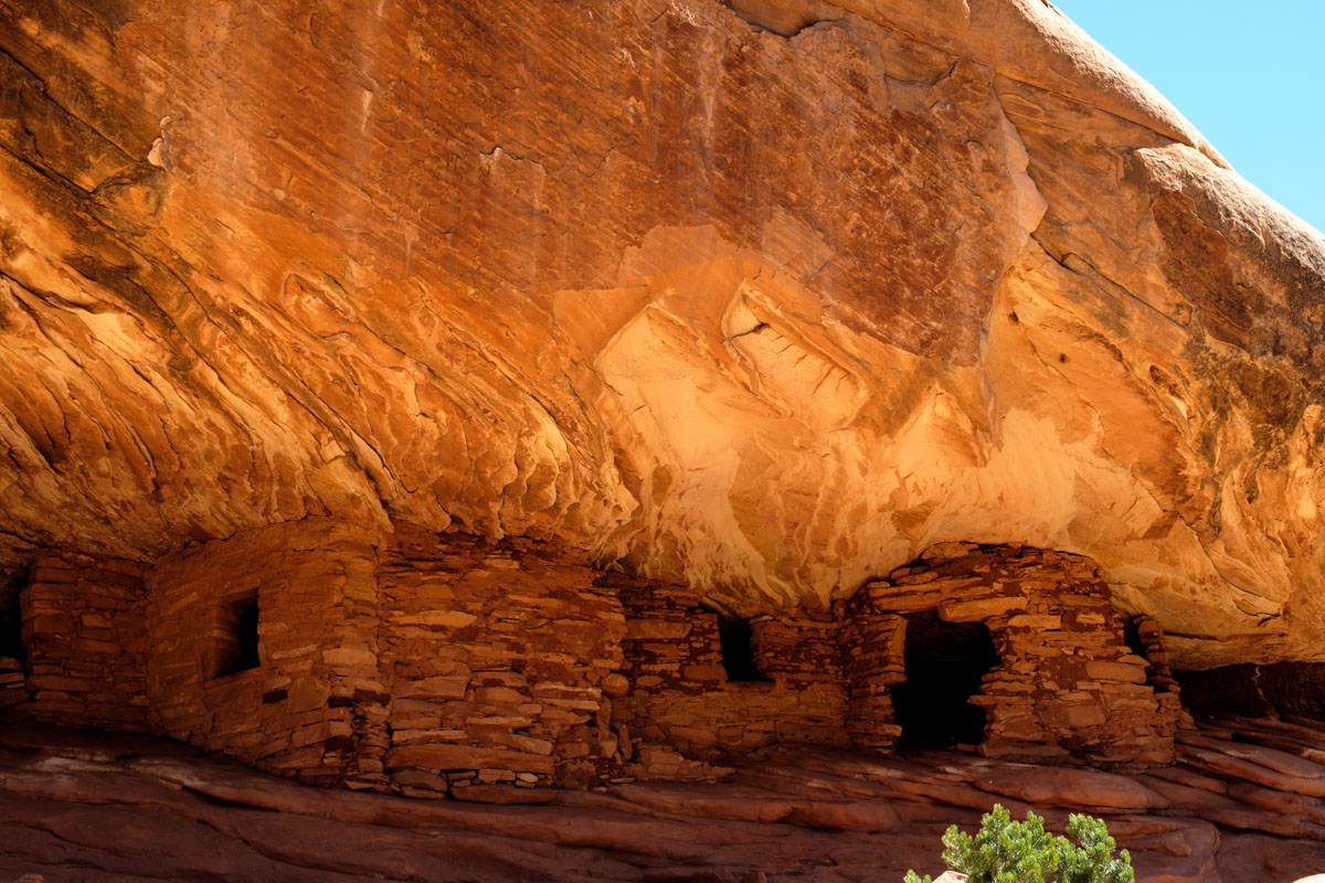 Es wird wieder ein sonniger und heißer Tag. Schon früher als üblich stehen wir auf, wandern im Mule Canyon. Zuerst muß man aber ein Permit kaufen. ( ganze 2$ p.P) Im Canyon merkt man nicht so die Hitze, es weht fast ein kühler Wind. Den Wanderweg muß man etwas suchen, (Boot-worn trail) aber die Ruinen unter der Felsüberhängen haben wir gefunden. Nach drei Stunden sind wir wieder zurück und machen gemütlich Pause (ist schon praktisch so ein Wohnmobil).