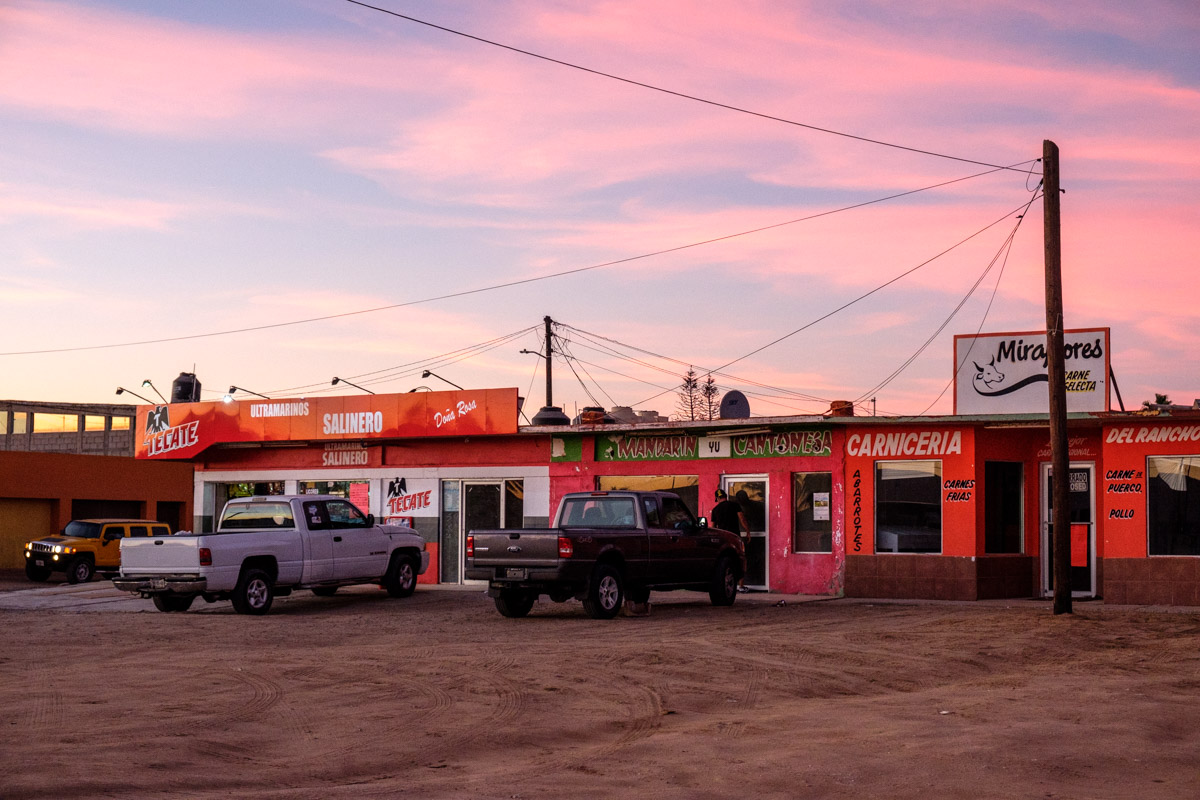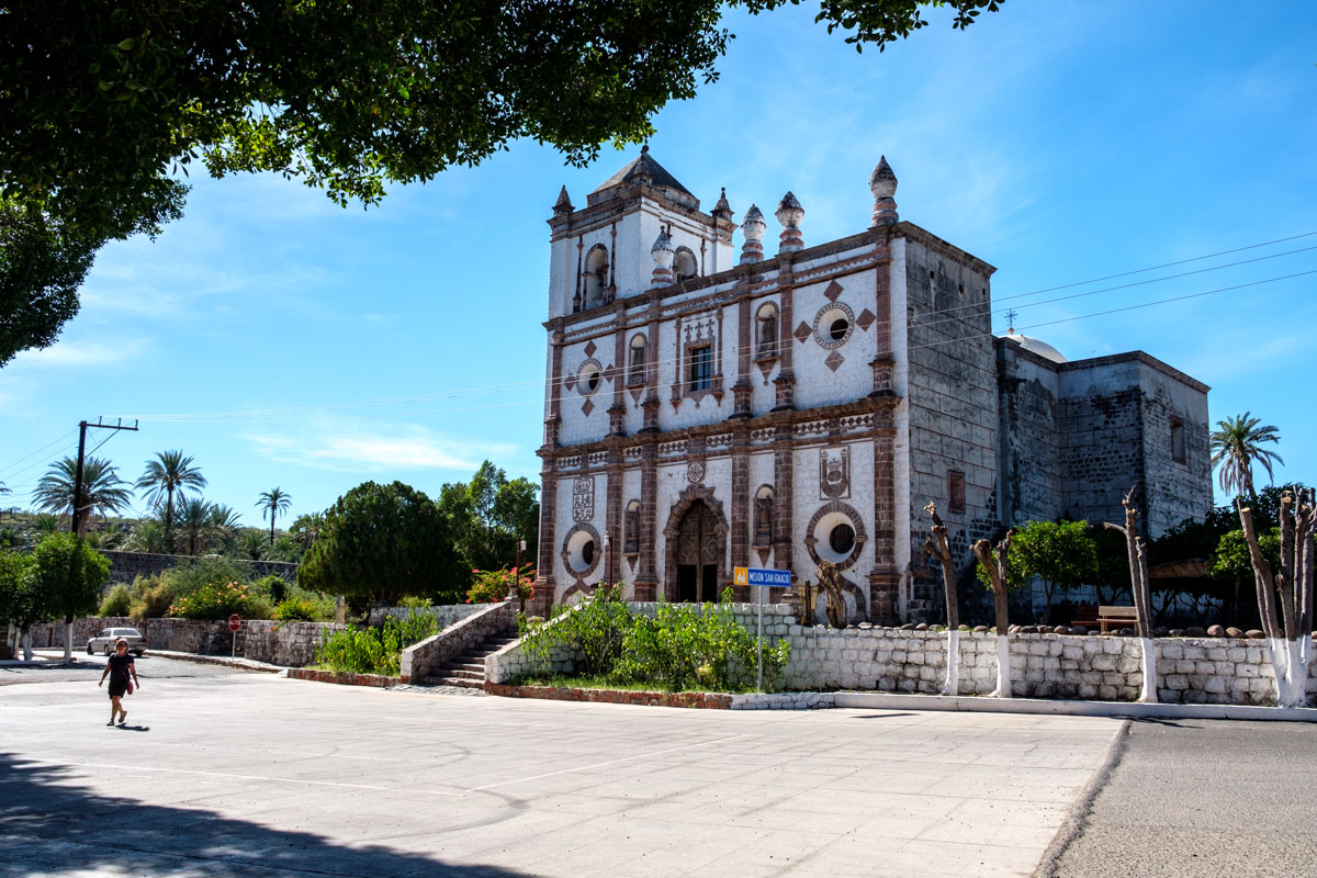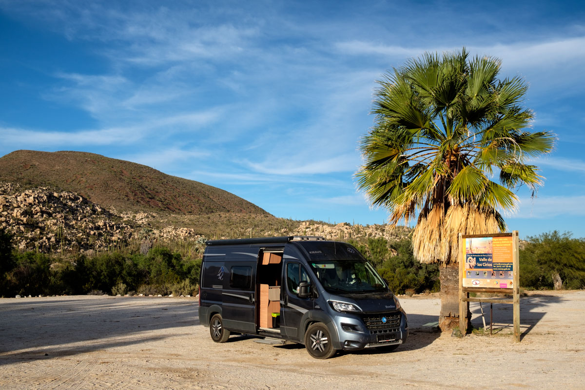 Bis jetzt hab ich die Baja Norte als Reinfall empfunden. Es ist dreckig, entlang der Straße liegt Müll rum, die Ortschaften wirken trostlos. Und von der MEX 1 wollen (können) wir nicht runterfahren, da bräuchten wir wirklich Allrad. Wir fahren immer noch, schön langsam bekomme ich Probleme mit dem Rücken was auch an der Straße liegt. In San Ignacio halten wir kurz, besichtigen die Missionskirche