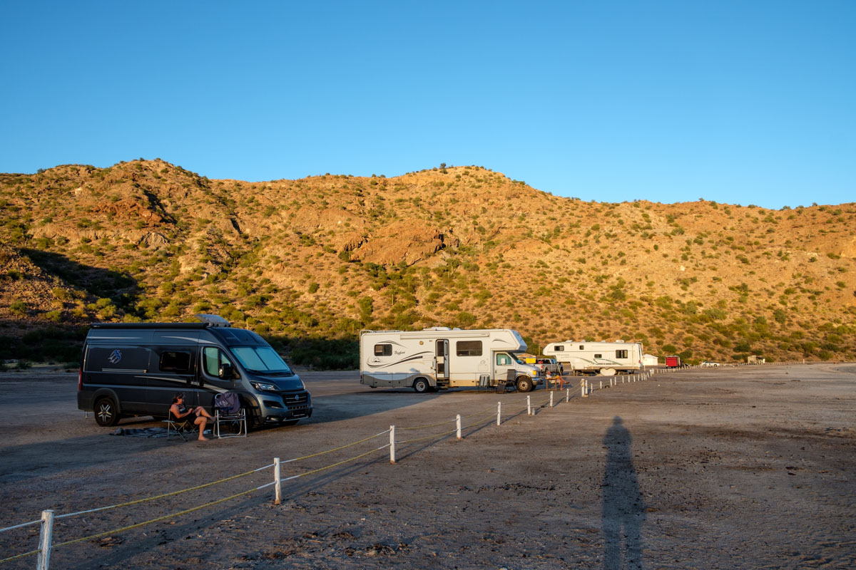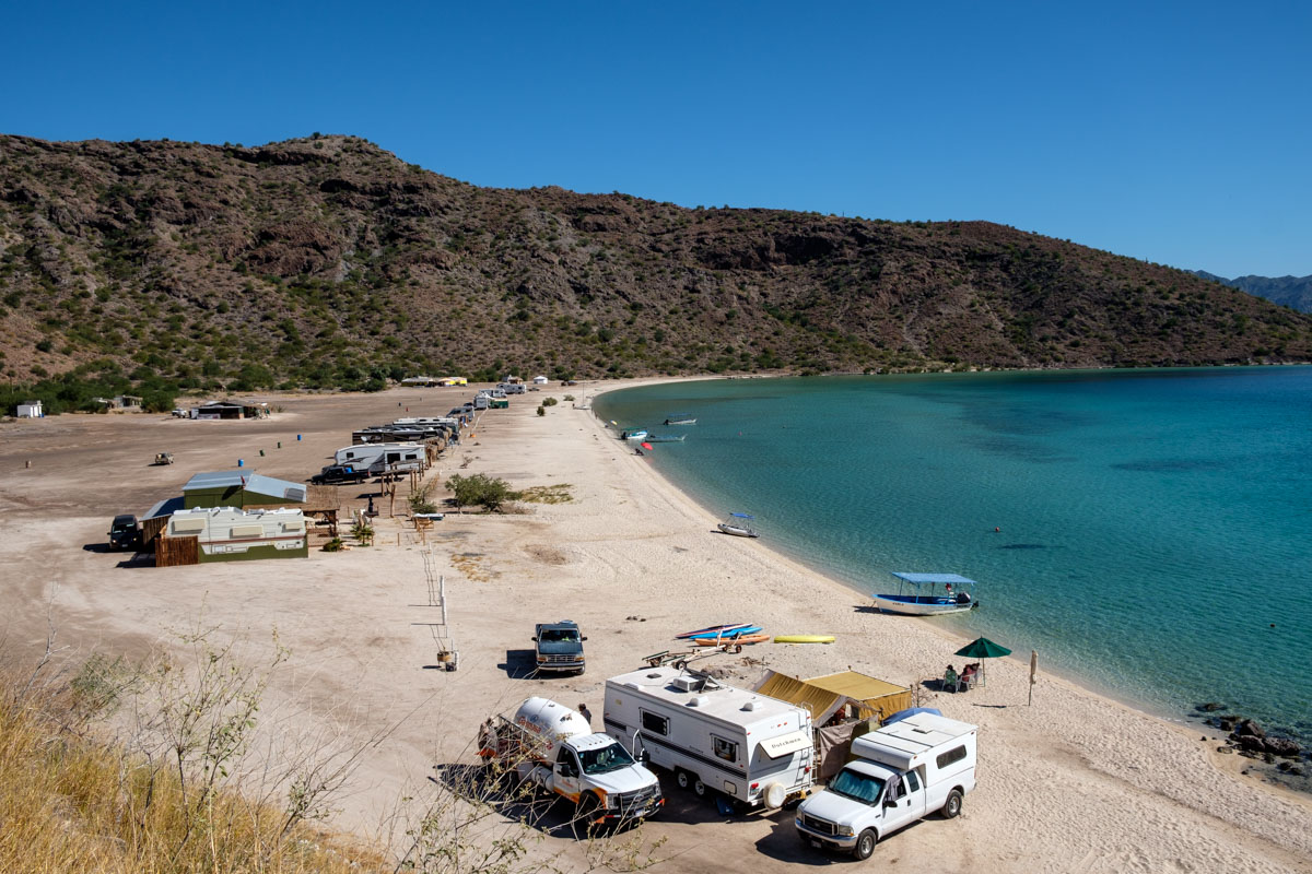 Die 115 km bis Loreto sind mittlerweile ein Katzensprung für uns. Gegen Mittag erreichen wir Loreto, der CP El Moro ist mitten in der Stadt, mal was ganz anderes. Hier bleiben wir etwas länger, ganz sicher eine Woche oder so… Herbert und Estelle sind auch da. Man kann schön am Strand gehen und ist trotzdem mitten in der Stadt.