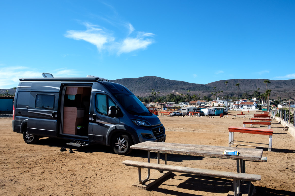 Wir fahren weiter bis Ensenada, dann noch bis zum La Jolla Beach CP und das bevor es um 17.00 stockdunkel ist. Hier ist der Punta Banda Beach wo heißes Wasser (mit Schwefelgeruch) am Strand austritt. Bei Ebbe könnte man sich ein Loch buddeln und ein heißes Bad nehmen.