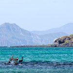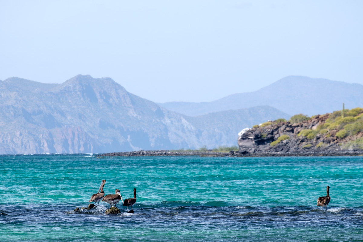 Um 9.00 starten wir mit dem Boot. Eine Stunde dauert die Überfahrt zur Insel und mindestens eine halbe Stunde bis sie umrundet ist. Wir haben Seelöwen gesehen, aber keine Schildkröten oder Delphine ☹Am Strand bekommen wir eine Schnorchel Ausrüstung. Leider stelle ich mich ganz schön doof an. Angeblich kann jeder mit Flossen schwimmen und schnorcheln, ich nicht. Später probiere ich es nur mit der Taucherbrille, es reicht um die Fischschwärme und die vielen anderen bunten Fische zu beobachten. Die Pelikane sind nur ein paar Meter weiter eifrig beim Fische fangen.