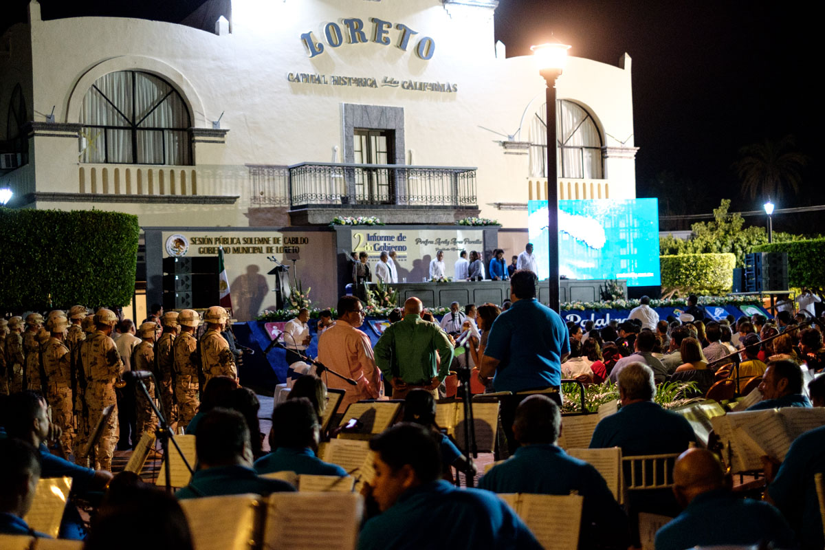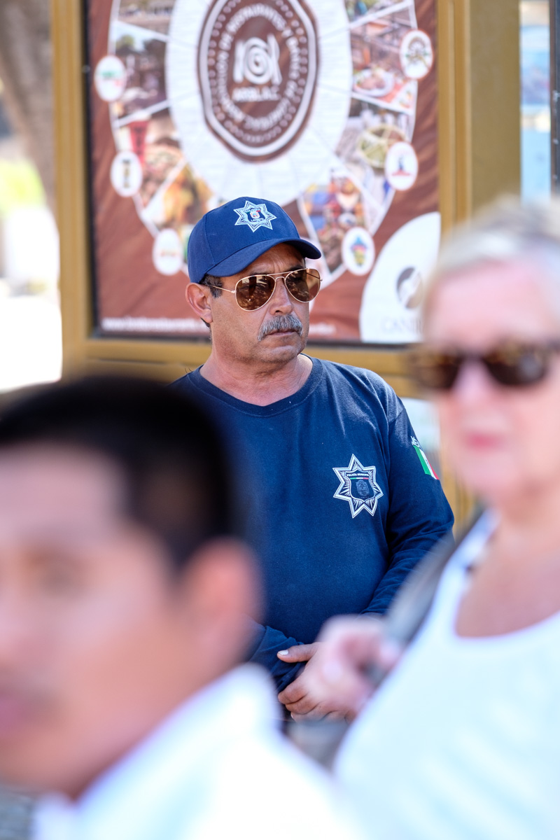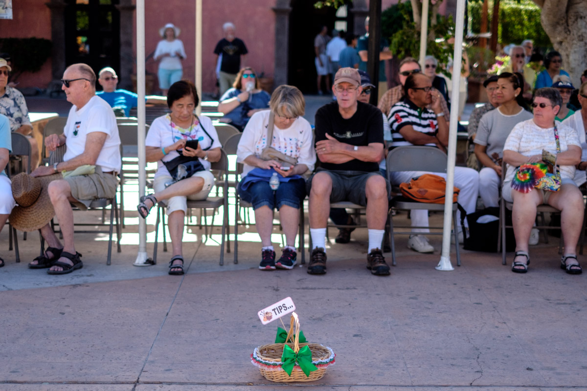 Heute ist Bürgerversammlung auf der Plaza del Mar. Im Freien, hier geht das. Der Ablauf ist dann so ähnlich wie bei uns: die anwesenden Honoratioren werden begrüßt, die Stadträte stellen sich vor, ein Werbefilm von Loreto wird gezeigt, dann hält die Bürgermeisterin eine lange Rede. Zu lange für uns wir verstehen ja eh nichts.