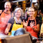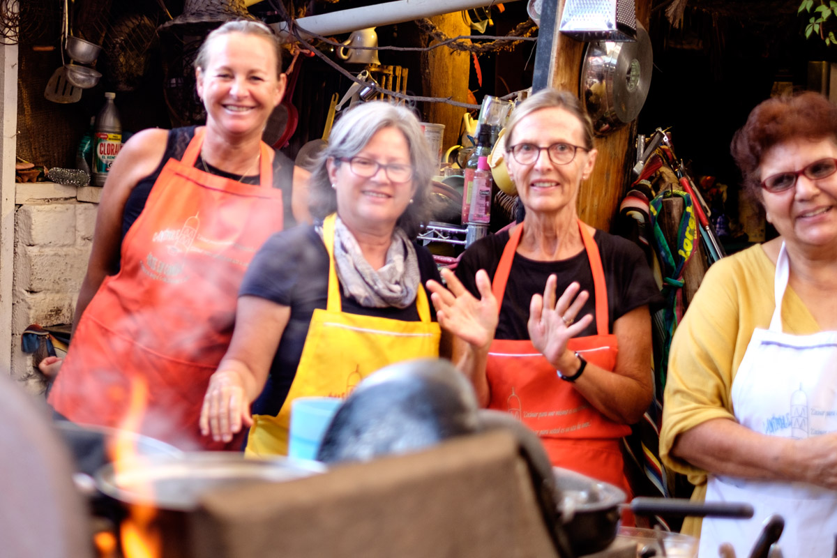 Am Strand spazieren, (was sonst?) abends durch die Stadt bummeln. Dann treffen wir uns bei einem Lokal das mexikanische Kochkurse anbietet. Es hat richtig Spass gemacht Estelle bei der Preisverhandlung zuzuhören. Am Sonntag abend findet der Kurs statt. Pünktlich sind wir zu Sophia, ein französisches und ein schweizer Paar und ich übernehm den deutschen Teil. Zum original mexikanischischen Kochkurs, wie Sophia betont. Ludwig ging es leider letzte Nacht nicht so gut und konnte deshalb nicht mitmachen. Wir haben am offenen Feuer gekocht: Tamales, Tortillas mit gelbe Rübenfüllung und Guacamole, gefüllte Paprika, Gemüsereis. Dazu hat Sophia noch Hähnchen mit Schokoladensosse vorbereitet. Dazu gab es noch Margaritas… und für mich, ich weiß nicht warum einen Tequila. Es war ein sehr lustiger Abend, meine Spanischkenntnisse wurden immer besser.