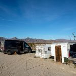 Der erste Teil war wie erwartet sehr steinig und staubig, aber man kann bei der Hälfte bei Coco´s Corner Pause machen. Coco ist ein 80 jähriger, beide Unterschenkel amputiert, sitzt im Rollstuhl und lebt hier alleine im nirgendwo. Kauft man ihm ein Bier oder zwei oder…. kann man dort kostenlos übernachten. Wir blieben dort Übernacht 😉