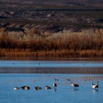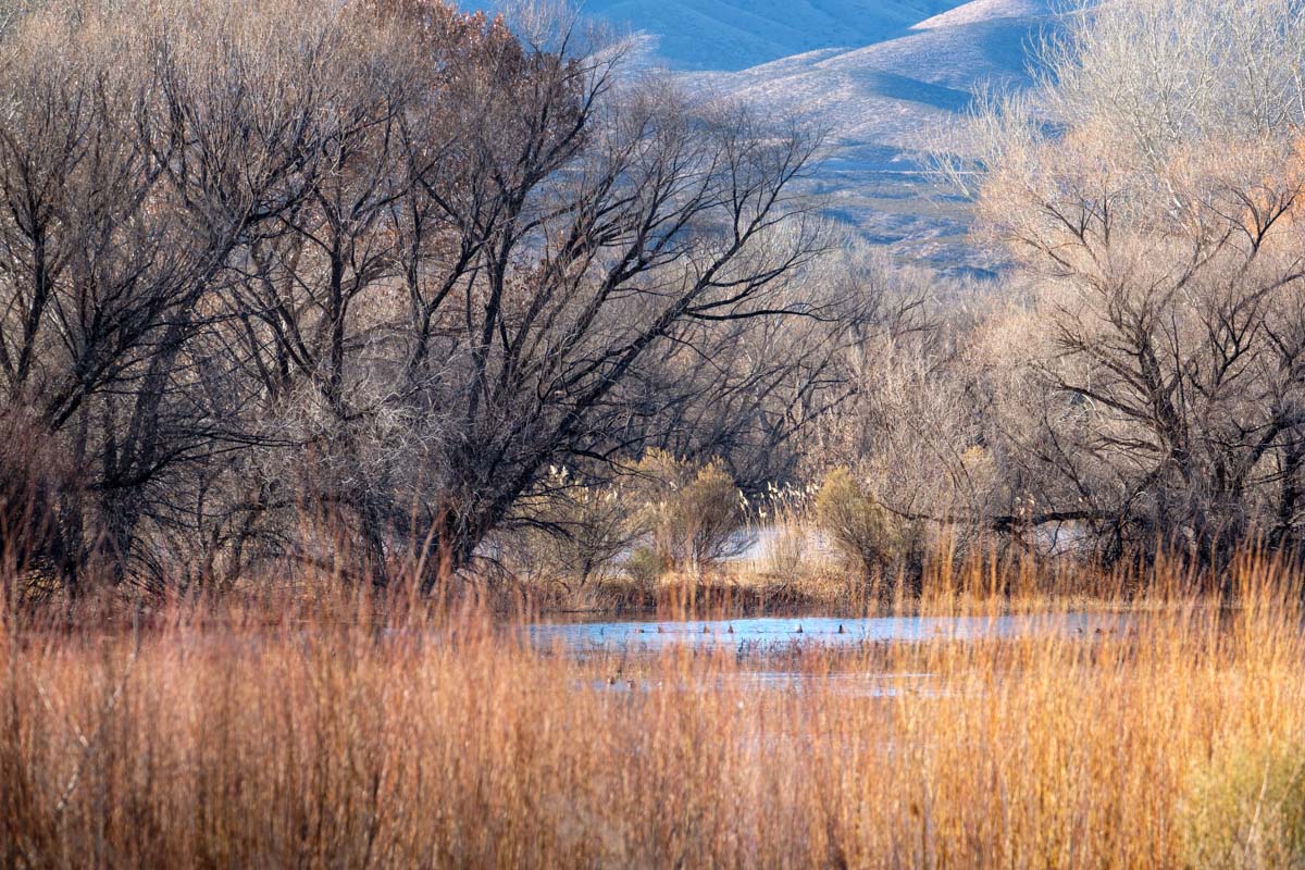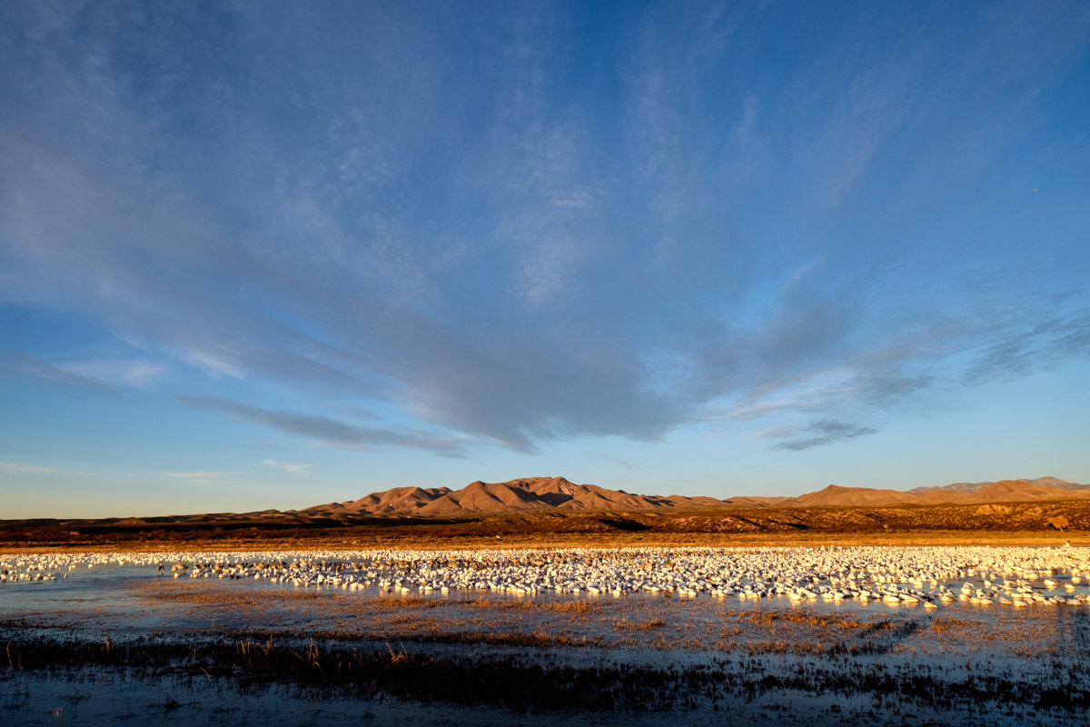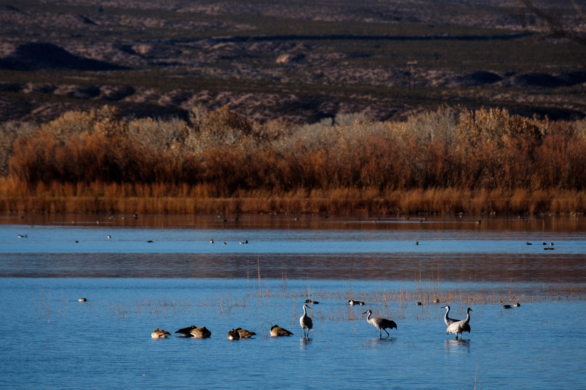 Im Bosque del Apache Wildlife Refuge VC bekommen wir Infomaterial, uns wird gesagt wo man die Kraniche und die Schneegänse sehen kann (ohne Gewähr, man soll halt schauen wo viele Fotografen sind). Ida darf in diesem Park nicht mal aus dem Auto, was ich aber verstehe (im Gegensatz zu der NP Regel) Hier überwintern so viele Vögel und man kann relativ nah ran, ich glaube das wäre nicht gut wenn die ständig von Hunden aufgescheucht werden. Außerdem zeigen uns die freundlichen Damen von der Info wo man mit Hund ganz in der Nähe wandern kann. Wir fahren in den Park rein, was soll ich sagen, mir tut Ludwig jetzt schon leid wenn er Bilder aussuchen muss.