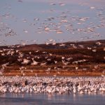 Am nächsten Morgen natürlich nochmal raus, was sonst! Dann tagsüber im Park fotografieren und am Abend erleben wir das einmalige Schauspiel: den Abflug der Schneegänse aus dem Park.